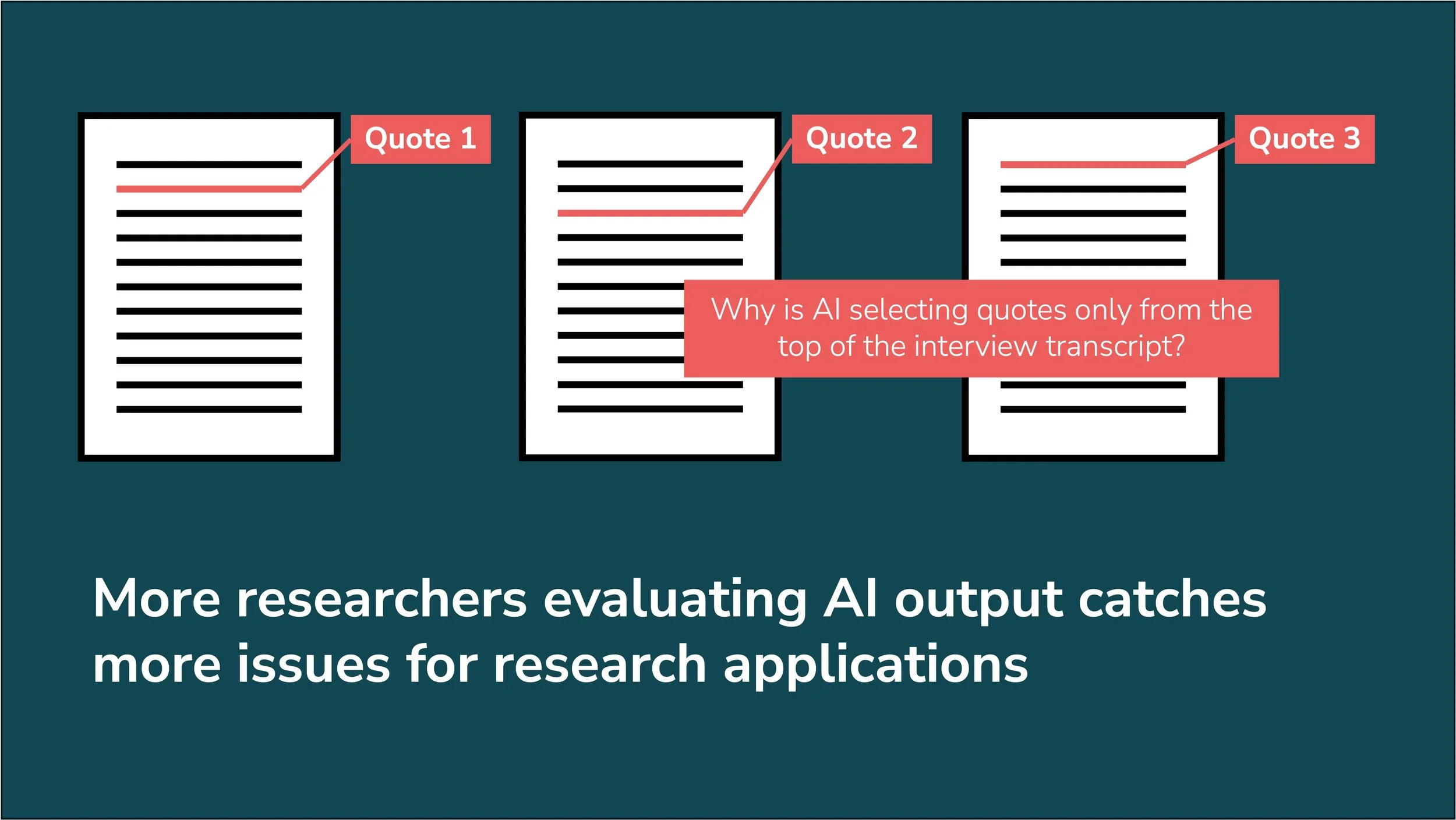 But in the course of analyzing her output, one of my participants discovered an issue I hadn’t recognized in any of my own pre-tests: the LLM was only citing quotes from the first quarter of her transcripts, reflecting a potential bias in how the LLM was surfacing supporting evidence.